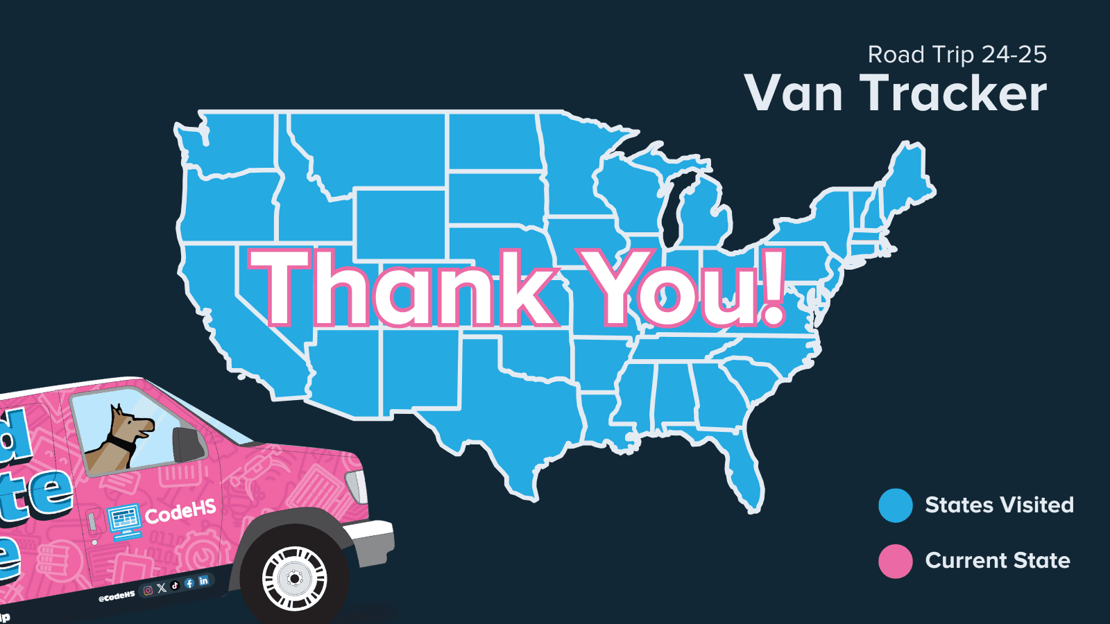 From all different sized communities, this road trip has been a powerful reminder of how computer science is growing across all types of schools. The energy, curiosity, and potential at each stop has been inspiring.The CodeHS van may be parking for a bit—but the momentum around CS education keeps growing.