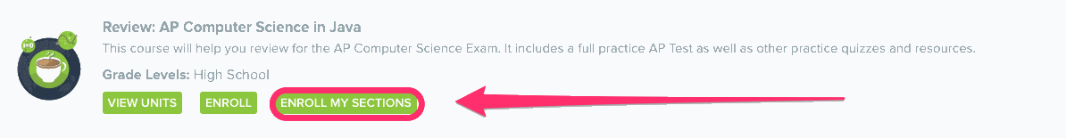 To enroll students in the Review course, just head to codehs.com/course/catalog and click the Enroll My Sections button.